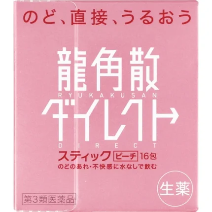 【日本直送】龍角散 免配水 潤喉粉 顆粒 保護 滋潤喉嚨 消除細菌【水蜜桃/薄荷味】16包 大阪實體藥妝店直送