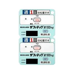 通常,成人每週服用一次,每次1錠(每日最高100mg),於指定的星期幾服用。